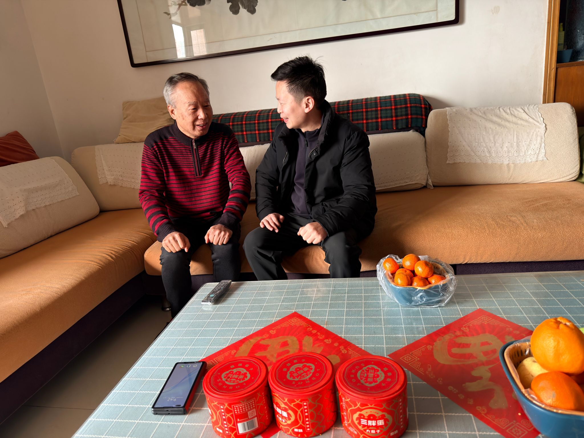 在走访过程中,学院领导与老同志们促膝谈心,亲切交流。他们详细询问了老同志们的身体状况、生活情况和实际需求,认真倾听他们对学院发展的意见建议,并回顾了老同志们为学院初创、建设与发展所作出的不可磨灭的贡献。学院领导表示,yl23455永利集团今日的发展成就,凝聚着一代又一代物理人的智慧与心血,老同志们艰苦奋斗、严谨治学、无私奉献的精神是学院的宝贵财富,今年我们挖掘王一平、胡昌璧夫妻的先进事迹并排演了话剧、撰写了传记,这些都是激励全院师生接续奋斗的强大动力。学院领导们向老同志们简要介绍了近年来学院在团队建设、人才培养、科学研究、团队队伍等方面取得的新进展与新突破,并就学院未来的发展规划听取了老同志们的宝贵意见。