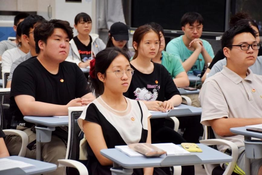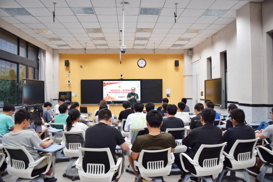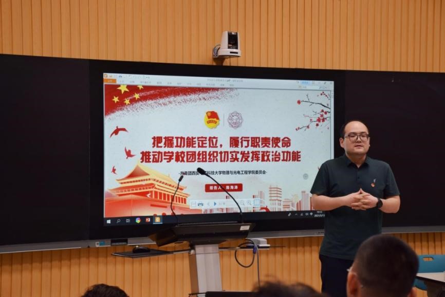 (通讯员:王超 席奥博)5月14日晚七时,在学校南校区C栋教学楼104室,物理与光电工程学院团委书记陈海涛以“把握功能定位,履行职责使命,推动学校团组织切实发挥政治功能”为主题,为学院团学组织全体员工干部讲团课。本次团课以线上线下相结合的形式进行,此前已下发相关学习资料,未到场员工干部通过腾讯会议在线上平台观看。本次团课由团委副书记刘泽霖主持,副书记席奥博做记录。
