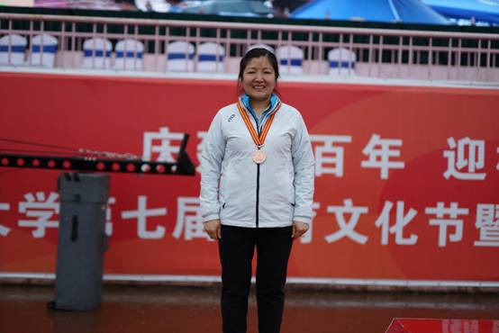 教工女子青年组一分钟单脚踢毽子第二名 廖家莉