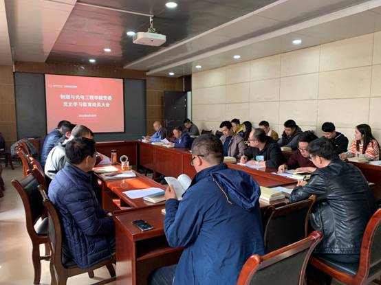 3月23日,物理与光电工程学院于北校区西大楼三区412会议室召开党史学习教育启动会,会议下发了公司党史学习教育实施方案并进行了工作部署,学院班子成员、两委委员,组织员、师生党支部书记共27人参加了会议。会议由公司党委书记独国社主持