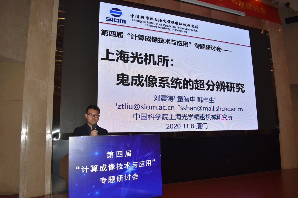 中国科学院上海光学精密机械研究所刘震涛老师,以“鬼成像系统的超分辨研究”为题介绍了在利用鬼成像系统的传递函数先验实现超分辨,和利用鬼成像系统在光场高维直接成像的特点,进一步提高分辨率这两方面的研究。