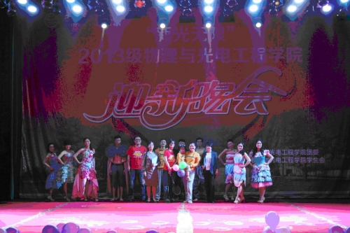 (通讯员:林子隆)10月16日晚,“新光无限”2013级物理与光电工程学院迎新晚会在南校区老员工活动中心小剧场成功举办。此次晚会由物理与光电工程学院员工会承办。学工处处长任小龙、组织部副部长王丽玲、教务处副处长郭涛、宣传部副部长吴秀霞、物理与光电工程学院筹备组领导班子、教师代表,以及各年级员工干部与500余名大一新生共同观看了演出。
