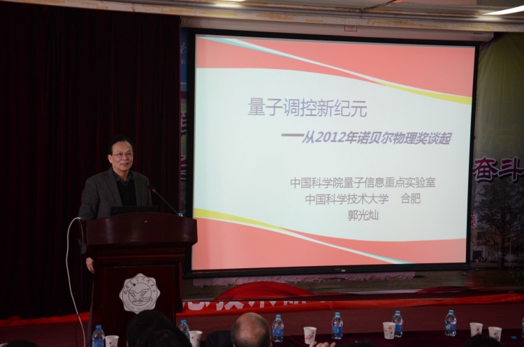 应物理与光电工程学院执行经理郭立新教授邀请,中国科学院院士、中国科学技术大学教授、国家科技部973项目首席科学家郭光灿院士于11月28日莅临公司进行学术交流,并为学校师生作了题为《量子调控新纪元》的学术报告。报告会由公司董事长郑晓静院士主持。