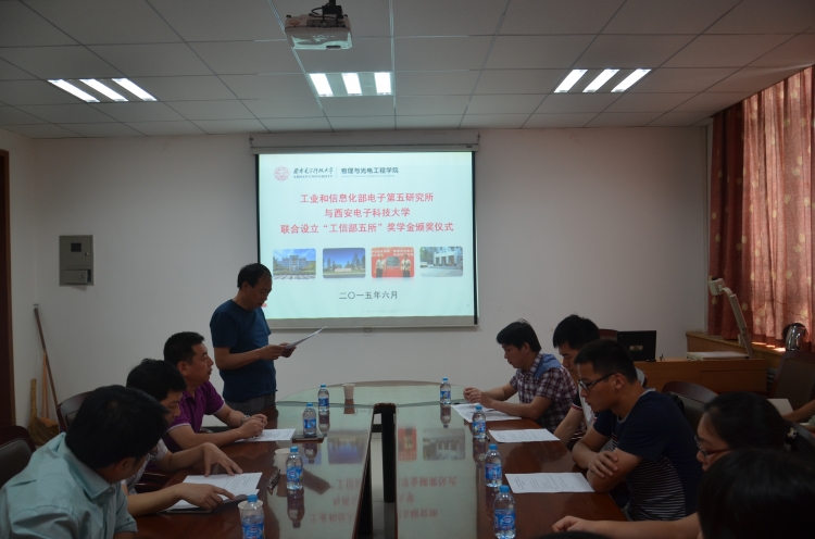 6月18日上午,物理与光电工程学院“工信部五所奖学金”颁奖仪式在北校区举行,延翔等12名同学获奖。工业和信息化部电子第五研究所党委副书记高裕跃,公司党委书记杨光暐、副书记林波、副经理李平舟及获奖同学和部分辅导员参加了本次颁奖仪式。颁奖仪式由公司党委副书记林波主持。