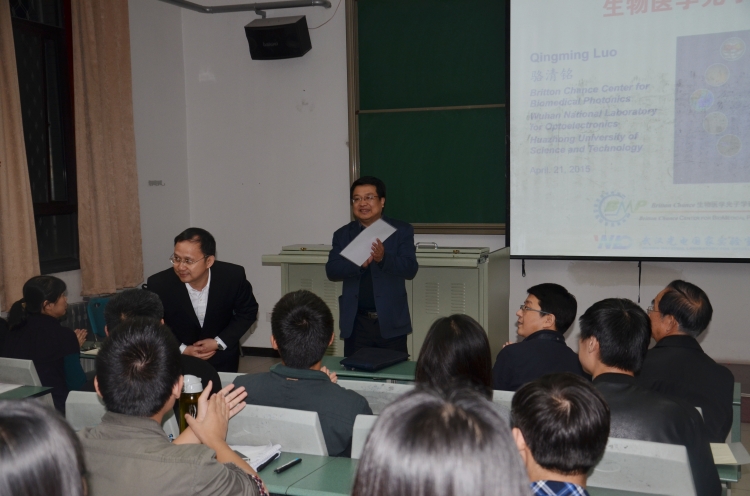 4月22日晚,应学院邀请,华中科技大学副董事长、武汉光电国家实验室(筹)常务副主任、公司员工骆清铭教授在北校区西大楼Ⅰ-106教室作了题为“生物医学光子学进展”的专题学术报告。报告会由学院执行经理郭立新教授主持,公司党委书记杨光暐、部分教师以及百余名员工参加了报告会。