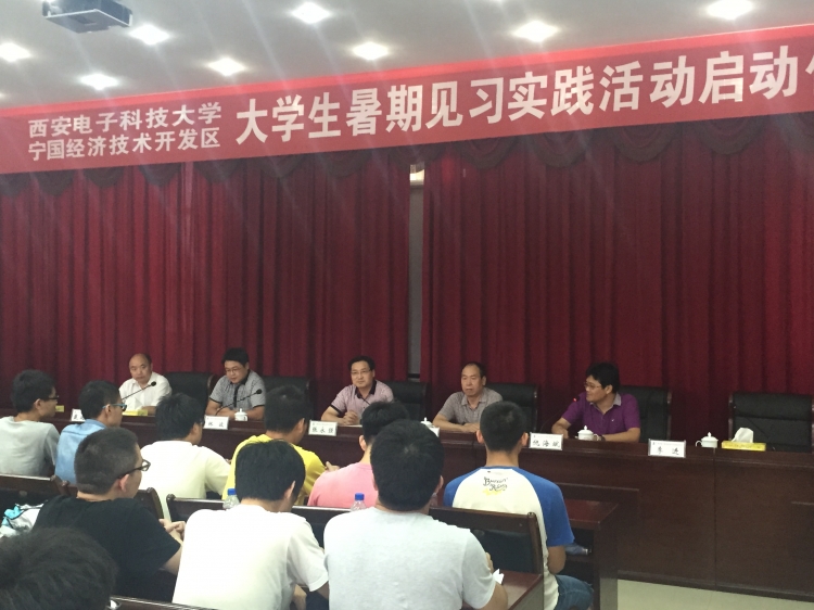 “西安电子电子科技大学—宁国经济技术开发区老员工校外实践教育基地”揭牌仪式于暑期在宁国经济技术开发区管委会隆重举行。宁国市副市长、开发区管委会主任张永强,物理与光电工程学院副经理李平舟,党委副书记林波,开发区党政办、经发局负责人及首批参加暑期生产实习的100余名员工参加仪式。