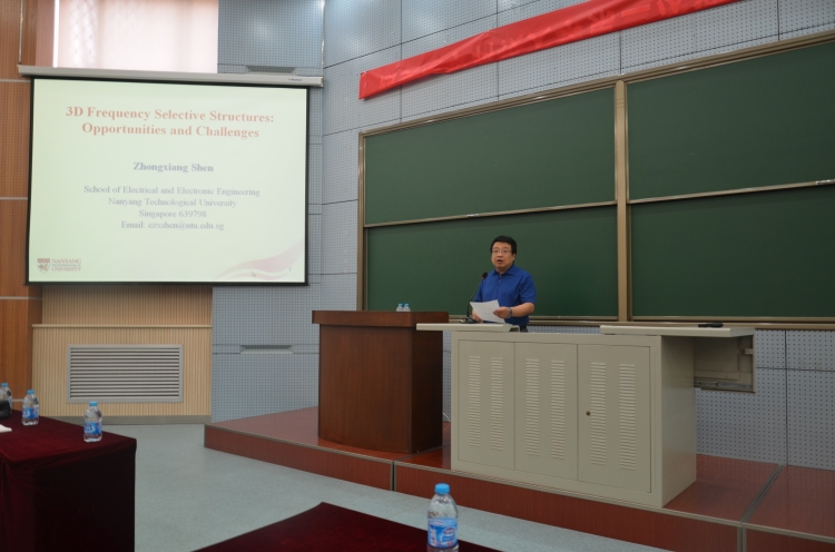 6月17日下午,应学院执行经理郭立新教授邀请,新加坡南洋理工大学电气与电子工程学院沈忠祥教授在北校区阶梯教室J-112作了题为“3D Frequency Selective Structures: Opportunities and Challenges”及“Wide-Band End-Fire Antennas of Low Profile”的专题学术报告。报告会由郭立新主持,学校、学院部分教师以及百余名员工参加了报告会。