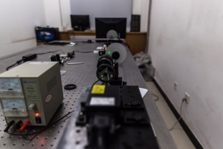 在yl23455永利集团北校区西大楼Ⅱ-210的实验室里,摆放着一套利用LED光源照明的无透镜散射成像实验系统。这套系统正中间,竖直放置着一块毛玻璃。毛玻璃的一边是观测目标,另一边是没有安装镜头的CCD相机。