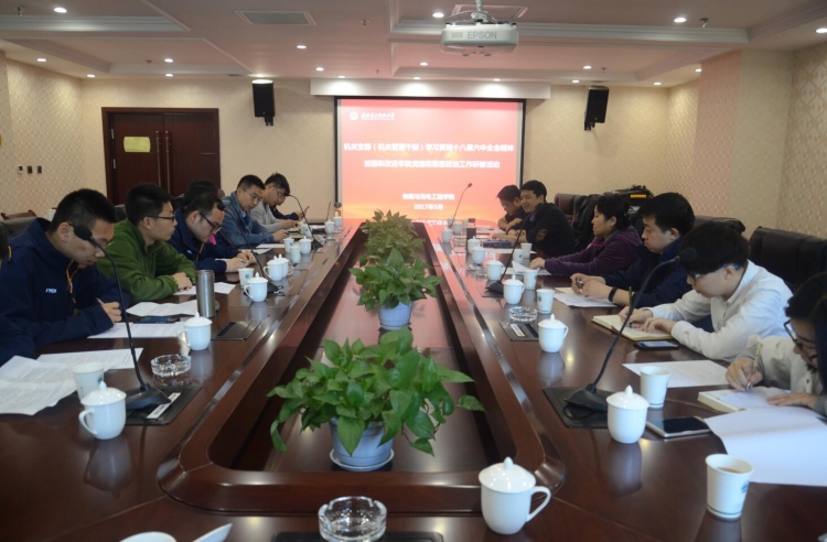 5月6日,物理与光电工程学院机关举办学习贯彻十八届六中全会精神暨加强和改进公司党建和思想政治工作研修活动,学院机关全体党员和管理干部共18人参加,党委书记杨光暐主持会议。他指出,今年是公司党委全面贯彻落实十八届六中全会精神和全国高校思政会议精神的关键一年,要把加强和改进党建和思想政治工作作为学院工作的重中之重,扎扎实实抓党建,凝心聚力促发展。机关党支部要切实发挥好“一个支部一座堡垒,一名党员一面旗帜”的作用,不断探索创新支部建设,把立德树人、规范管理的严格要求和春风化雨、润物无声的灵活方式结合起来。要在公司党支部建设中带好头,起到示范作用。