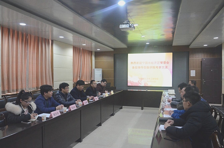 (通讯员 李维嘉)2月25日,宁国经济技术开发区管委会常务副主任梅骏国等一行来访物理与光电工程学院,学院执行经理郭立新、党委副书记林波、教师代表会见了来访客人,双方就加强产学研合作等相关事宜进行了交流座谈。