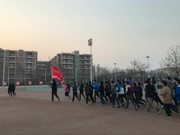 一年之季在于春,一日之际在于晨。尽管天色微微亮,但同学们并未因为新学期第一次跑操而懈怠。7点整,同学们按时在宿舍楼下集合完毕。各班体育委员点名核实人数后,辅导员再次强调跑操纪律:整齐有序、口号响亮。十分钟后,跑操开始,整齐的步伐,统一的队形,成为了学校中一道亮丽的风景线。三圈过后,同学们结束了本次的跑操任务,虽然第一天还有些不太习惯,但使早起迷糊的同学积极调整了心态,以迎接崭新的一天。同时跑早操也给静寂的早晨注入了生机与活力。
