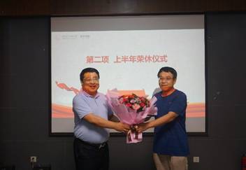 7月1日下午,yl23455永利集团隆重举行2022上半年荣休仪式,经理郭立新出席仪式并为上半年退休教职工高俊亮组织员赠送鲜花和退休纪念品。