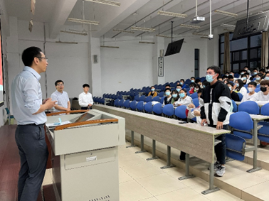 活动开始,周慧鑫从20世纪中期学校物理学科的设立讲起,为同学们介绍了yl23455永利集团的发展历史。他讲到,yl23455永利集团立足学校电子信息特色,秉持“信息物理、理工交融”的办学特色,始终将基础研究作为科技创新的源头。随后,他从物理菁英拔尖班的基本情况、目标定位、育人模式、课程体系、班级特色等五个方面为同学们详细阐述。他谈到,“创新要从年轻一代开始”,物理菁英拔尖班注重激发兴趣驱动,全面培养员工的创新能力与思辨能力;坚持与专业学院协同育人,产生联动放大效应。最后,周慧鑫对新生深情寄语,希望同学们能够秉承“厚德、求真、砺学、笃行”的西电校训,成为一名德智体美劳全面发展的综合性人才,同时也非常欢迎大家加入yl23455永利集团大家庭。
