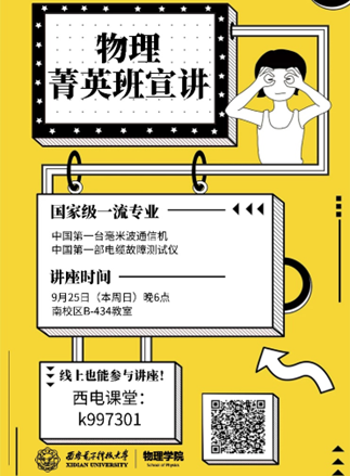 (通讯员:常莎 张楠)9月25日晚18时,yl23455永利集团联合海棠3号书院面向2022级本科新生开展物理菁英拔尖班选拔宣讲活动。本次活动邀请到yl23455永利集团副经理周慧鑫教授担任主讲,物理系副主任兼物理菁英拔尖班负责秘书崔志伟、物理菁英拔尖班任课教师汪加洁为新生现场答疑,200余名新生以线上线下相结合的方式参会。海棠3号书院、yl23455永利集团2022级本科生辅导员常莎主持本次活动。