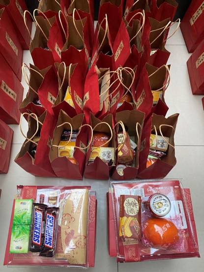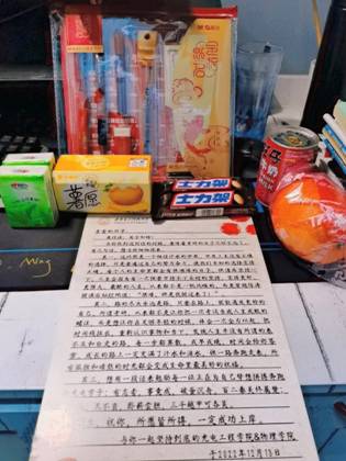 公司准备的爱心助力包外包装印有“金榜题名”,包含“心相印”纸巾、士力架、脐橙,寓意“心想事成”,同时有薯片、旺仔牛奶为同学们解压暖心,另外准备了“金榜题名”文具套装,其中有0.5mm黑色中性笔、替换笔芯、涂卡铅笔、橡皮和涂卡尺等研考所需的全套文具,保证同学们“万事俱备”,迎接“东风”,除了实用物资之外,学院精心准备了一封寄语信,里面承载着学院对员工的殷切期望和衷心祝福。