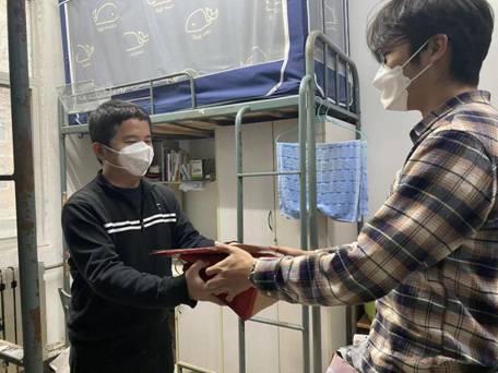 (通讯员:王思莹)12月的寒冬里,考研学子坚忍不拔的进行最后的冲刺,大半年的努力即将迎来胜利的果实,为提升考研学子们的信心,坚定必胜的决心,万事俱备的放心,12月13日下午16:00,公司党委副书记黄军荣与毕业班辅导员韩金虎来到丁香12号宿舍楼,为yl23455永利集团正在备战考研的学子送上学院准备的暖心助力包。