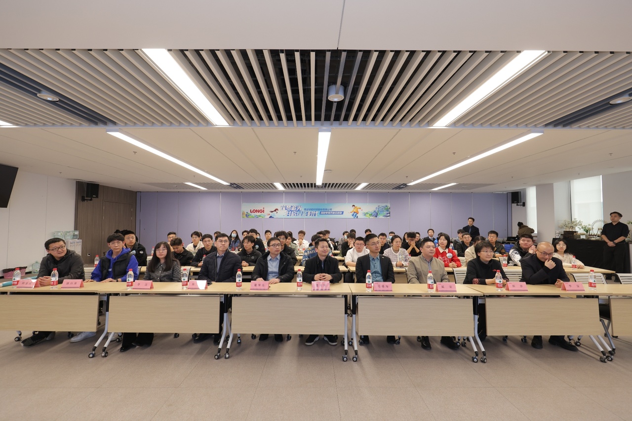 隆基绿能人力资源副总经理马福海、招聘管理部负责人戴坚、品牌管理部品牌规划总监李濛、招聘管理部高级经理郭彦、品牌管理部经理周浩等公司领导向同学们介绍了公司生活和工作情况进行了介绍,并就校园招聘、技术发展、个人规划等问题与同学们进行了深入的交流。