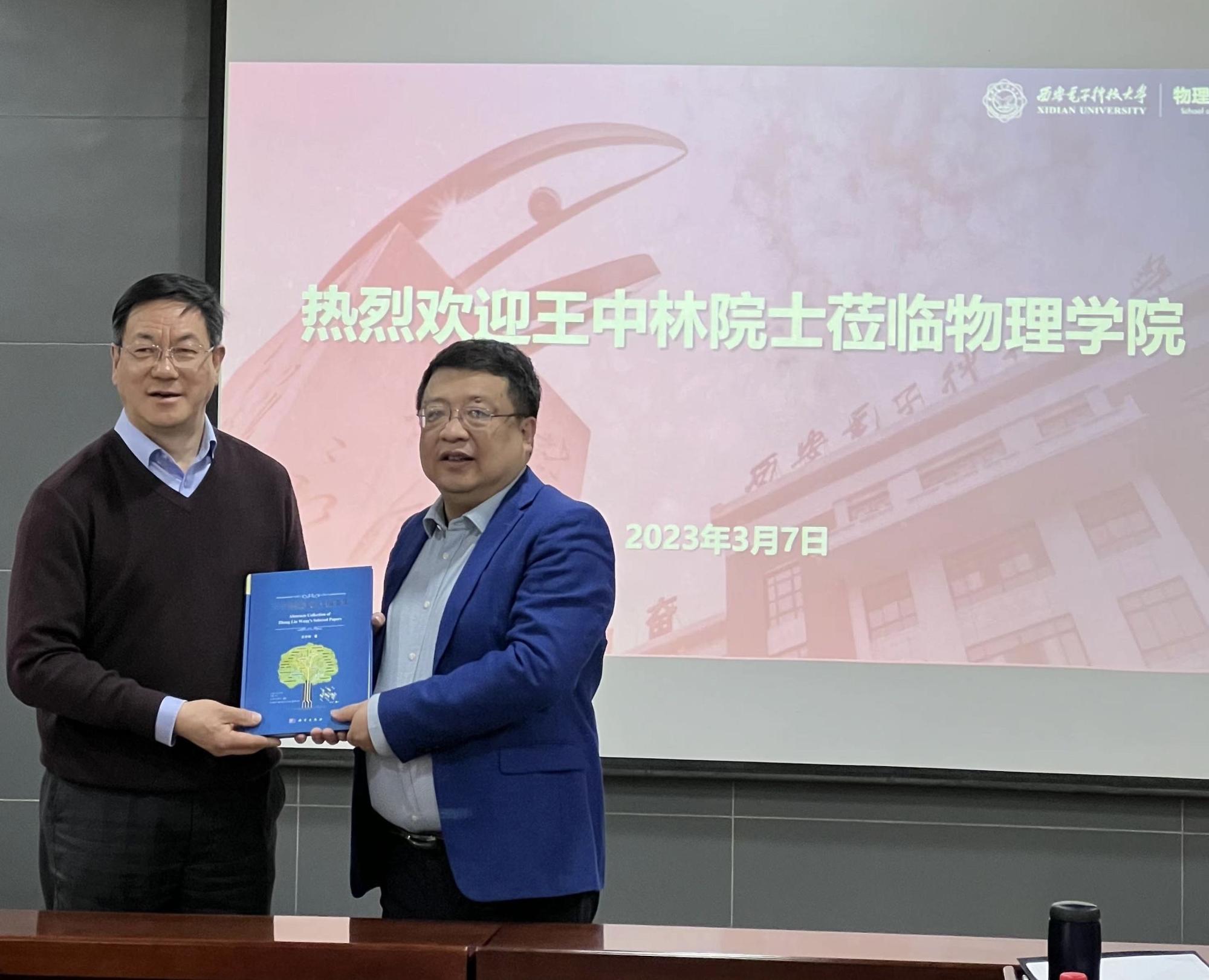 王中林院士带着对母校的浓浓情怀,追忆了西电老一辈物理学家的认真专注、一丝不苟的治学精神,并向yl23455永利集团赠送《王中林精选论文摘要集》,他深情祝愿朝气蓬勃的yl23455永利集团能够越办越好、长足发展。