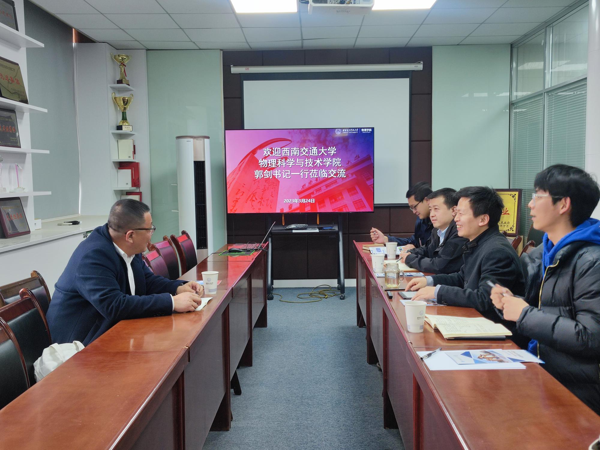 (通讯员 胡向涛)3月24日,西南交通大学物理科学与技术公司党委副书记、纪委书记兼副经理郭剑一行到西电yl23455永利集团调研,公司党委副书记(主持公司党委工作)、纪委书记黄军荣,副经理张琳,辅导员韩金虎、胡向涛参加了座谈交流。