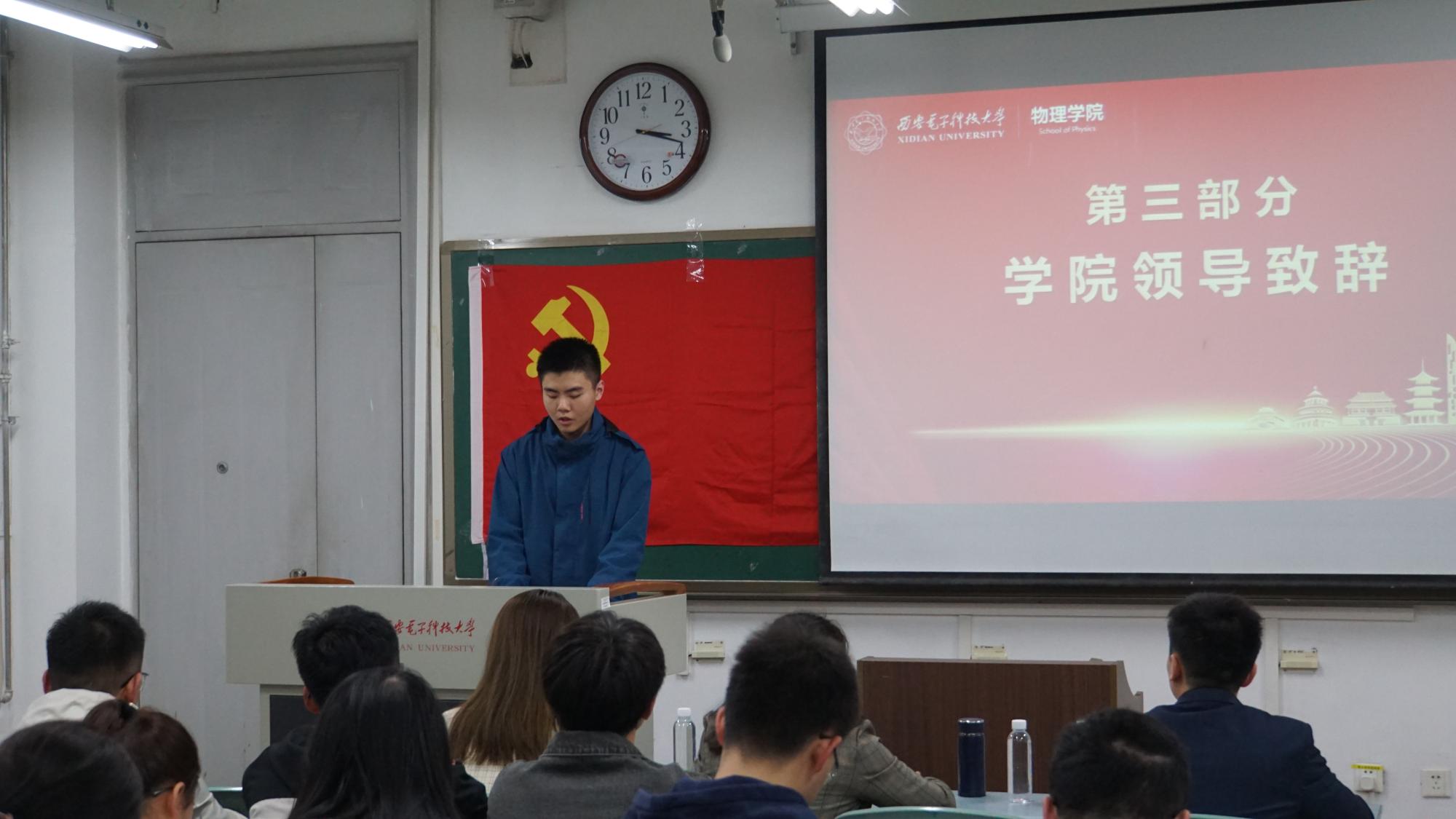 随后本科生代表、学校“瑞金之星”老员工骨干培训班成员杨秉衡发言。他以零件和机器、砖瓦和房屋作比,强调了个人与集体之间的关系,强调了每个人存在的意义。
