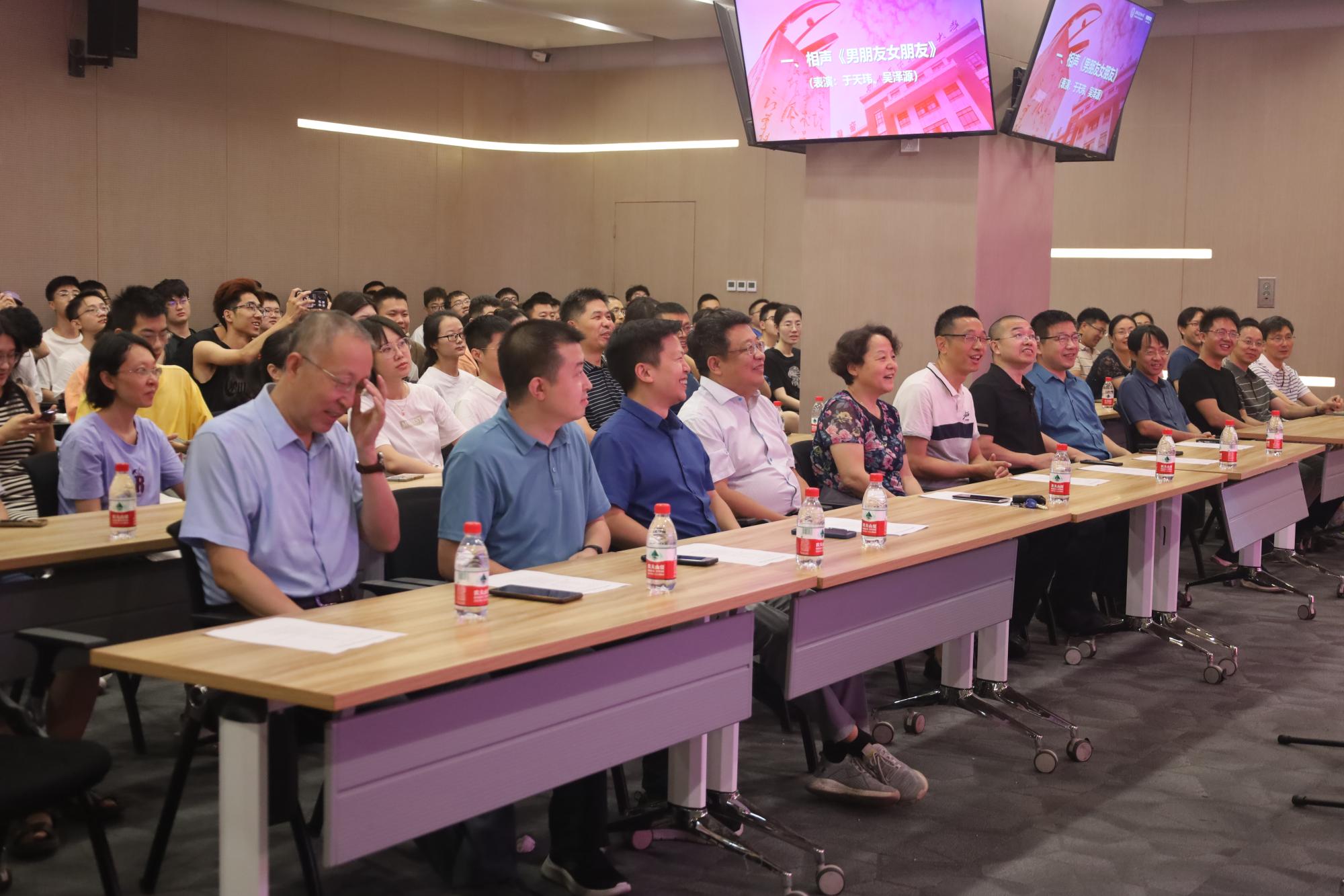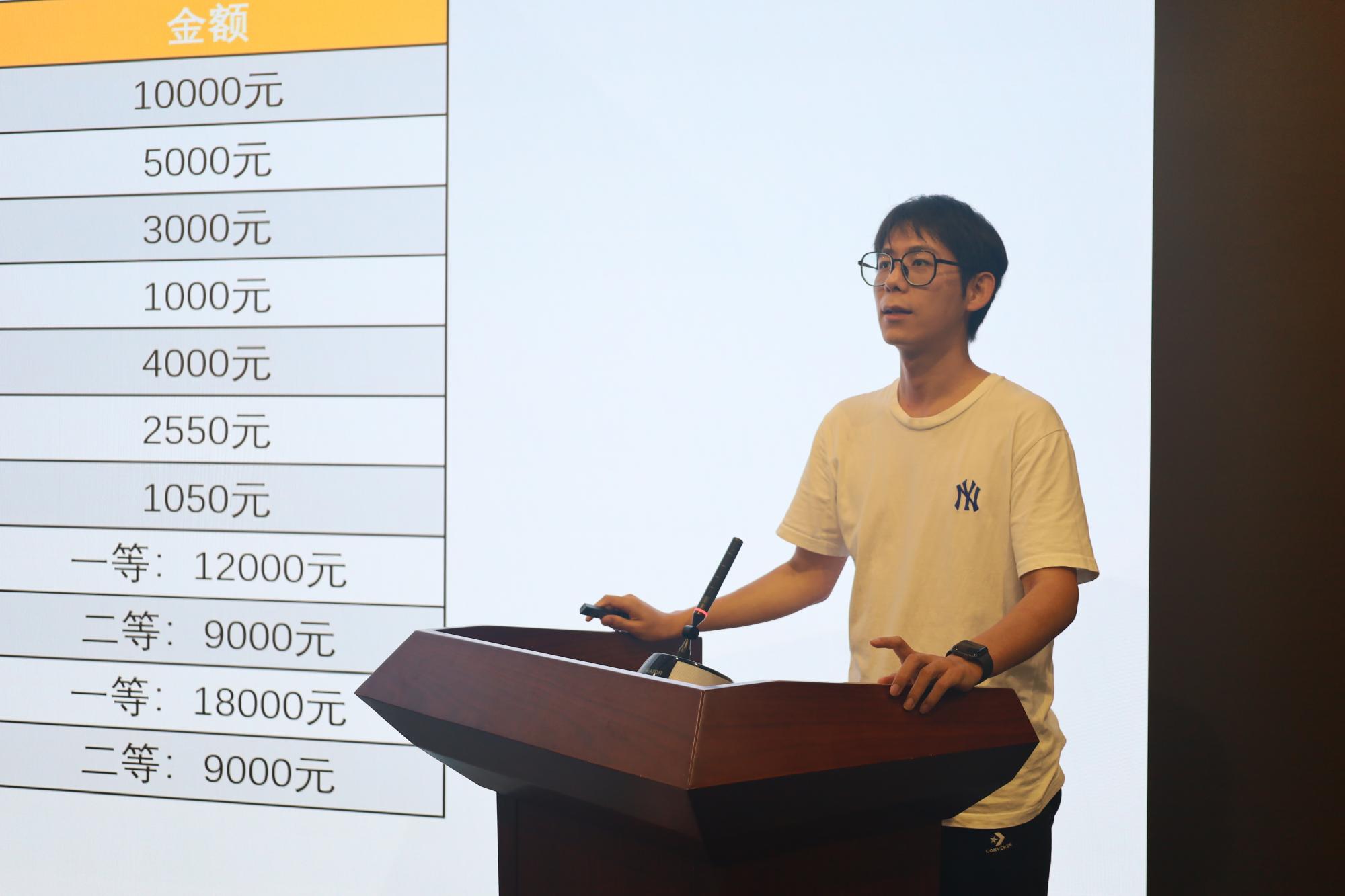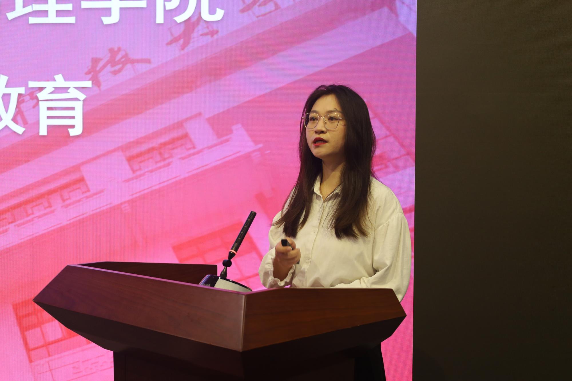 刘美玲同学表演歌曲《喜欢你》后,公司产品干事姚娇和研究生辅导员分别就公司产品环节、学校奖助体系情况进行了讲解与答疑。