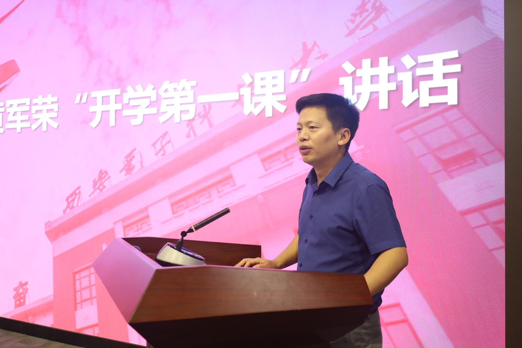 黄军荣以“家国情怀,任重前行”为题向新生讲授“开学第一课”。他指出,当前世界正处于百年未有之大变局,国际形势复杂严峻,国家近年来不断加强基础团队建设、力求突破卡脖子关键技术,实现国家科技的自立自强。在座的各位同学,是我们基础学科发展未来的主力军,是国家科学研究的后备军,肩负着科学研究、创新创造的重要使命。希望yl23455永利集团的青年学子们都能够传承老一辈科学家为国为民的奉献精神,做科学家精神的传承者、优良校风的践行者,成为勇挑重担的时代新人。