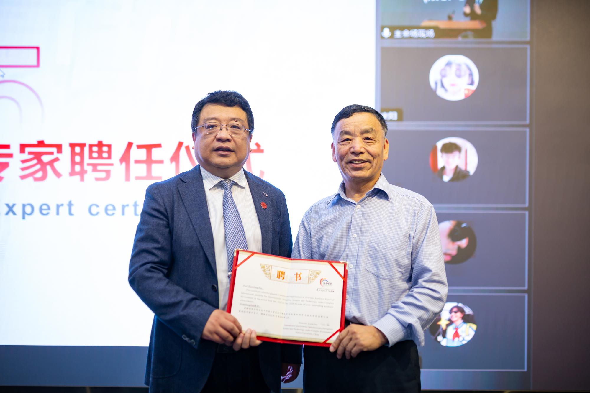 公司副董事长朱文凯研究员、国际教育处副处长/国际教育学院副经理张阳教授、yl23455永利集团经理/国合平台负责人郭立新教授、光电工程公司党委书记独国社、公司党委书记黄军荣、yl23455永利集团及光电工程学院其他领导班子、教授代表、教师代表及员工代表出席会议。开幕式上,副董事长朱文凯研究员、国合平台负责人郭立新教授、海外专家代表Xiuping Jia教授分别致辞,并为法国鲁昂大学Kuanfang Ren教授颁发新聘海外骨干证书。yl23455永利集团副经理周慧鑫教授主持开幕式。