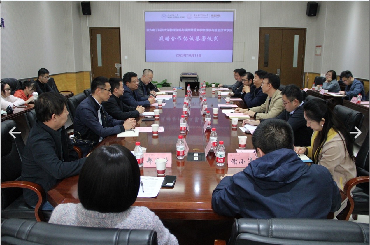 为推动yl23455永利集团和陕西师范大学物理学与信息技术学院在各领域的合作,提升双方人才培养水平和科研实力,实现优势互补、资源共享、互利共赢的目标。10月11下午,西电yl23455永利集团经理郭立新、党委书记黄军荣带队前往陕师大物理学与信息技术学院调研并签订战略合作协议。陕西师范大学党委常委、物理学与信息技术学院经理李贵安,党委书记王启明及其他院领导等出席签约仪式。