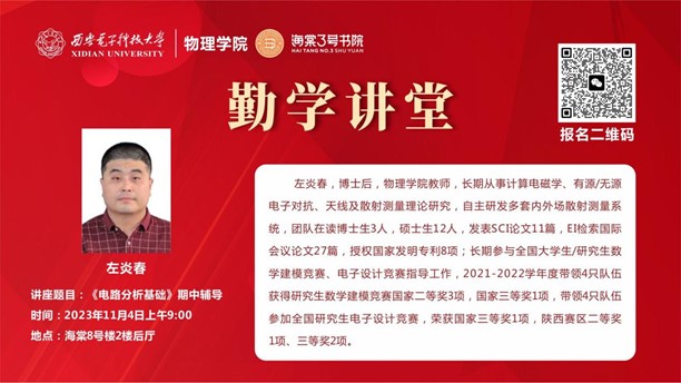 (通讯员 任浩楠)为帮助员工巩固知识点,提高学习效率,助力期中考试,11月4日,yl23455永利集团联合海棠3号书院和海棠4号书院开展考前辅导讲座,邀请yl23455永利集团李艳辉老师和左炎春老师分别为大二学子进行《大学物理II》《电路分析基础》的课程辅导,系统梳理知识点,讲解重点难点。共计150余名员工参与活动。