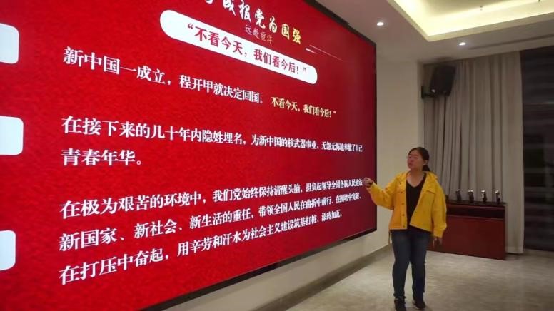 首先,武彤带来题为“许党报国程开甲”的微党课。“远赴重洋,学成报党为国强;隐姓埋名,野地黄沙惊雷响;舍己奉献,不变其节岁月长。”武彤从以上三个方面为大家讲述了程开甲院士的故事,通过具体的实例将程开甲院士的形象有血有肉地呈现在大家的眼前。同志们听后深有感触,大家不禁被程开甲院士求知钻研、无私奉献、坚韧顽强、忠心为国的精神打动。