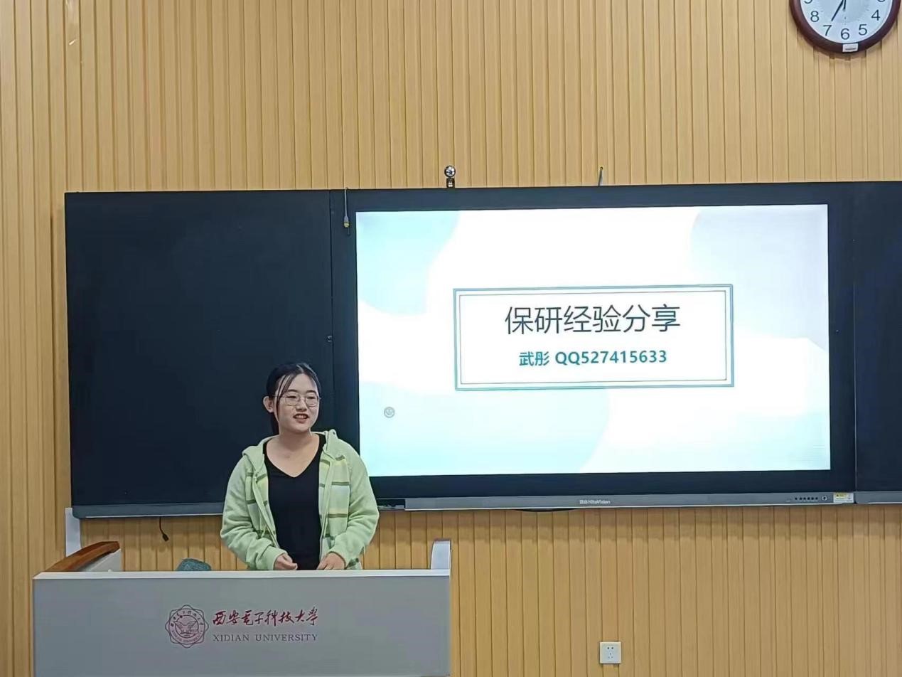 她鼓励同学们要坚定信念、踏实学习,并对同学们提出的“如何提高专业课程成绩”等问题作出了详细解答。她建议学弟学妹们应该在前期花费一定的时间做好信息收集工作,提前做好预推免面试的相关准备,安排好各个面试的时间,最大化提升自己的投入产出比。
