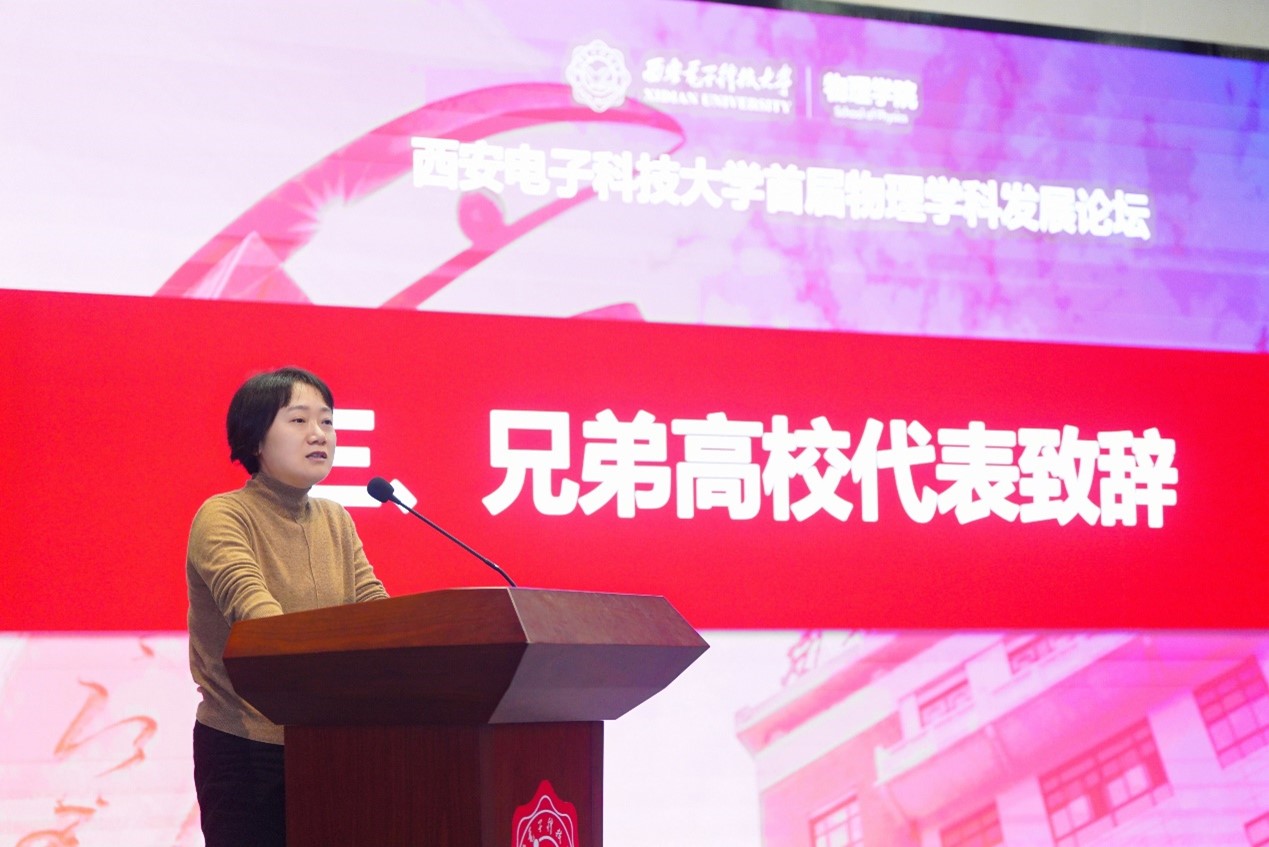 鞠艳做为高校代表在致辞中讲到,南京大学物理学与西电物理学有一个共同的yl23455永利集团是什么——于全院士,能感受到西电对物理学科发展的高度重视。西电yl23455永利集团成立一年半多已经在人才培养、本科专业、团队队伍、学科平台等方面取得蓬勃发展,团队建设前景无限,希望今后能加强交流与合作,共谋基础学科发展。