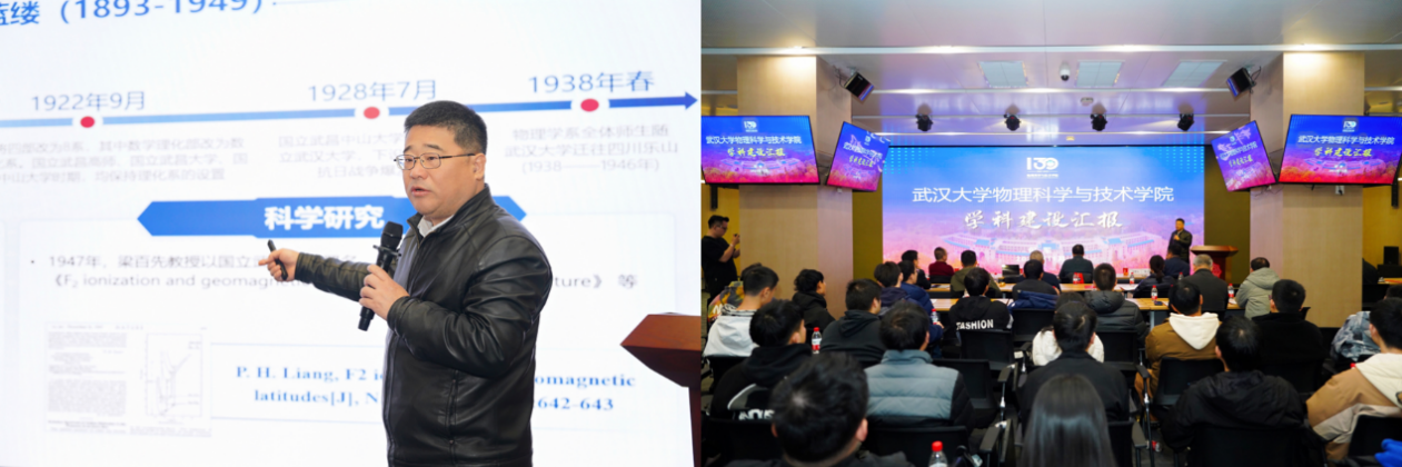 下午,俞大鹏、何军、杨文力依次作《高质量发展量子计算,赋能第四次工业革命》、《武汉大学物理学科130年发展报告》、《数学物理之美——量子可积系统的精确解》主题报告;并召开了物理学学位授权点自评估专题会议。