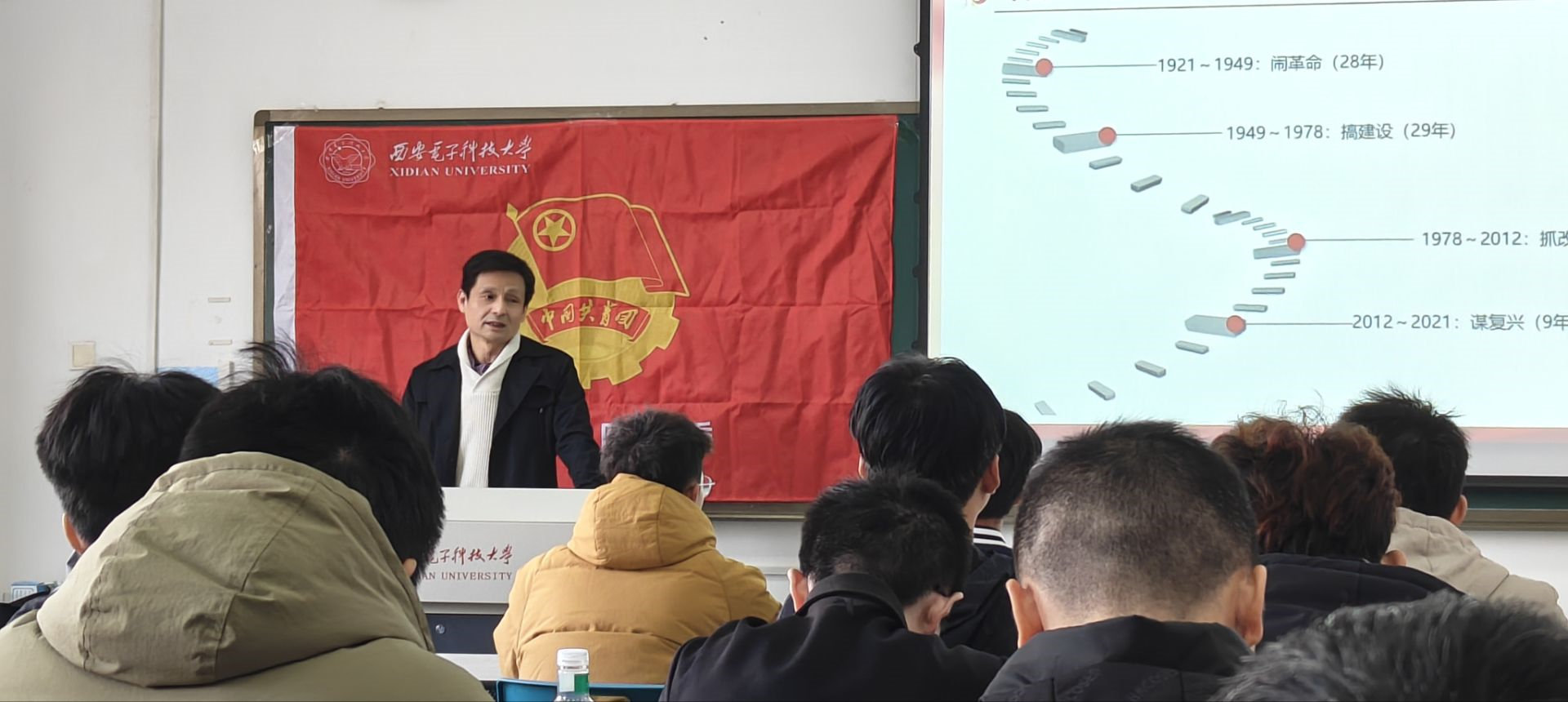 车纯以“不忘初心,走好新时代赶考路”为主题进行了党课讲授,从“中国共产党百年发展史的辉煌成就”“共产党赶考之路的起点西柏坡”“走好新时代‘赶考’路”三个部分梳理了中国共产党的发展历程。他讲到,习近平总书记的重要讲话指出了西柏坡的独特定位和时代价值,强调党面临的“赶考”之路远未结束,因此作为新时代青年要不忘初心、牢记使命,务必谦虚谨慎、艰苦奋斗,锲而不舍实现既定目标,务必敢于斗争、善于斗争,有效应对重大风险挑战。他总结道,中国共产党的“赶考”精神与时俱进,在新时代的赶考路上,年轻一代要做好新时代的答卷人。