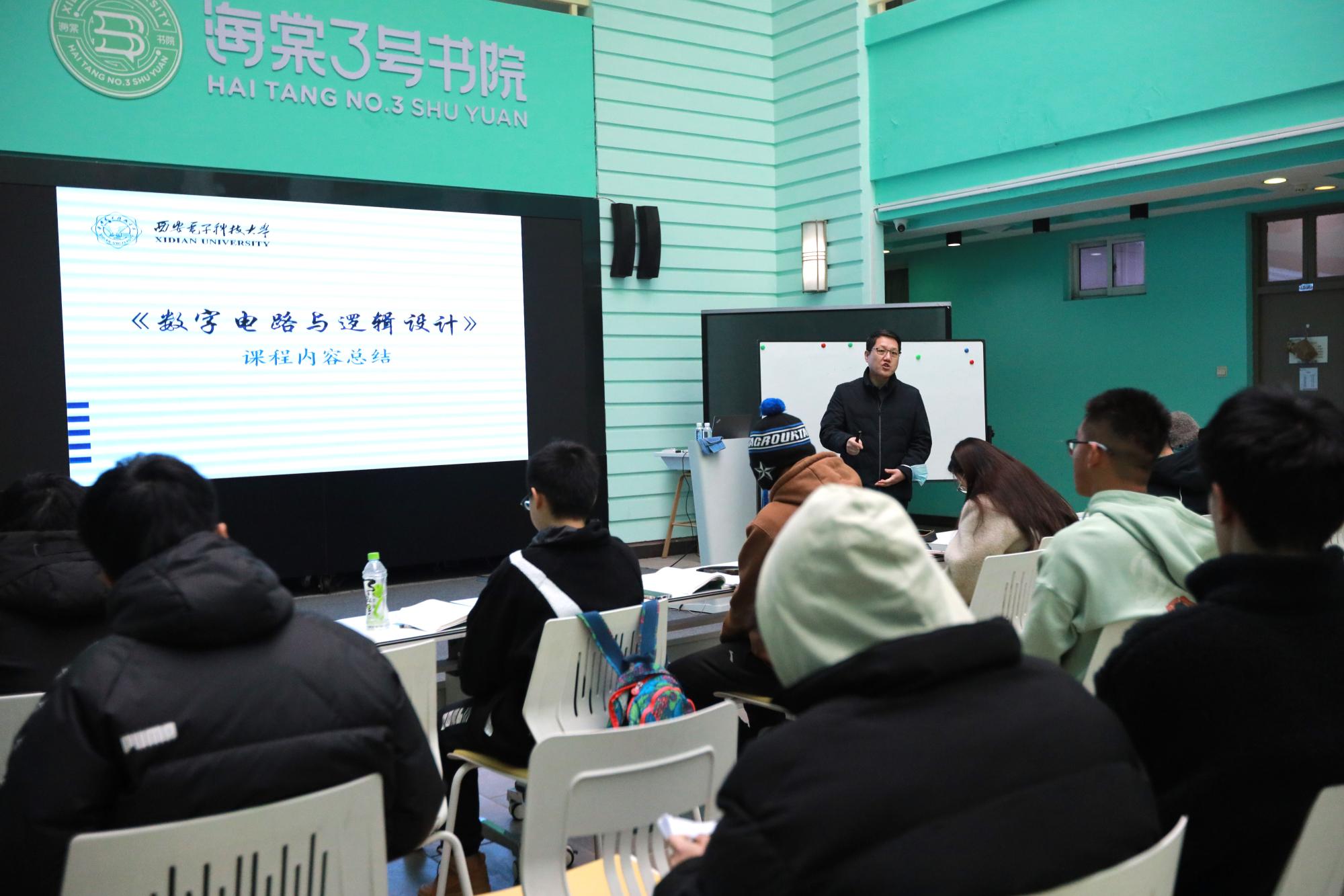 1月12日上午,刘春波开展了《数字电路与逻辑设计》课程的复习讲解。首先,他系统性讲述了课程体系设计,强调基础知识的重要性,通过对典型例题——基础的数制和码制、逻辑函数等进行详细讲解,帮助同学们对难点知识深入思考和理解。接下来,他重点讲解了组合逻辑电路以及时序逻辑电路的分析和设计,并对同学们有疑惑的知识点进行答疑解惑,帮助同学们进一步提升复习质量。