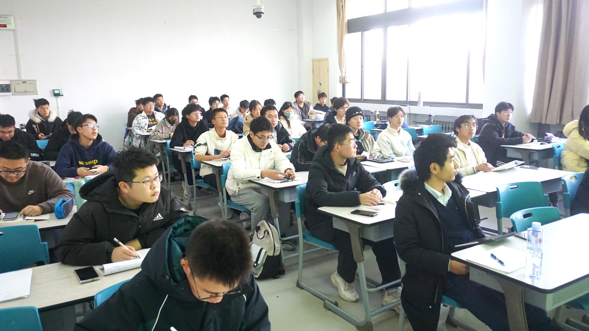 1月11日上午,张睿挺进行《场论与复变函数》课程复习讲座,他按章节顺序依次为大家细致讲解了课程的基础知识点:复函数、解析函数、幂级数、泰勒级数、洛朗级数、双边幂级数等,不仅带领同学们梳理了课程概念知识,还传授了复杂问题的思维逻辑及解题方法,同学们认真听讲做笔记。最后,张睿挺与同学们进行互动交流,叮嘱同学们要加强基础内容复习,多做经典例题更有助于归纳和总结。