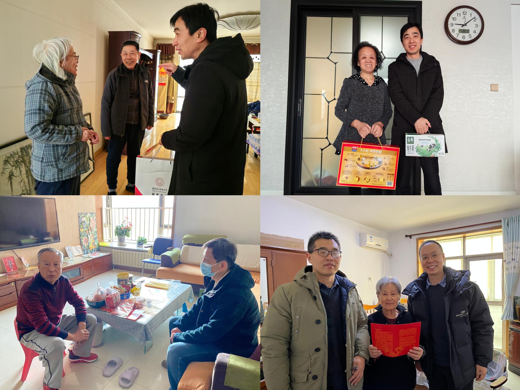 每到一处,学院领导向老教师送上慰问品,详细询问老教师及家人的身体状况及生活情况,了解老教师们退休前的光荣事迹,并向他们送上新春贺卡,介绍学院一年来取得的巨大成绩,感谢老同志们为学院发展作出的贡献,以及对新学院建设的关心和帮助,希望老同志们能够持续发挥余热,为学校和学院的发展提出意见建议,共同答好“教育强国,西电何为”的时代命题。