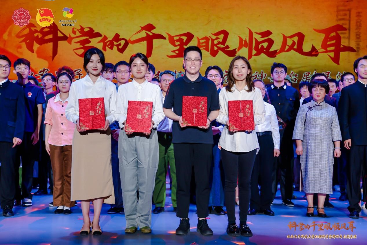 公司师生原创大师舞台剧《破晓》在展演活动中上演,该剧由本科生、研究生、老师共同参与演绎,在本次展演中荣获“优秀原创作品奖”、“优秀剧目奖”、“优秀指导教师奖”。《破晓》以西电物理学科创始人、物理团队班核心人物——王一平、胡昌璧夫妻为故事原型,节选标志性事件进行剧本编排,讲述他们以国家民族命运为己任,弃戎从笔、力排众议建理科、潜心教书育人的教育家故事。本剧目前期筹备11个月,查阅主人公文字资料20万字、视频资料20小时、采访相关人物15人,报名展演人数60余人,零基础的员工演员们通过1500分钟的排练时间,最终以富有感染力的艺术形式精彩演绎老一辈“科学巨匠”矢志报国和为国育才的家国情怀和奉献精神,演出现场座无虚席,在场观众反响热烈,好评如潮。