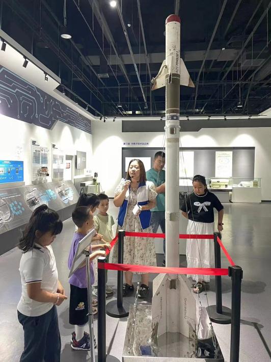 在博物馆,讲解员向大家多维地讲述了电子科学技术发展的历史和我国军事电子科技事业发展的历程,展现了西安电子科技大学建校以来为中国电子科技事业所做出的贡献。随后在讲解员的引领下,家长带领孩子们有序地参观了通信厅、雷达厅、计算机厅、电子元器件厅等八个展厅,一件件时代感与科技感交织的科技产品和一张张充满故事感的照片映入孩子们眼帘,让孩子们久久驻足观看,科学的种子也在他们心中悄然发芽。
