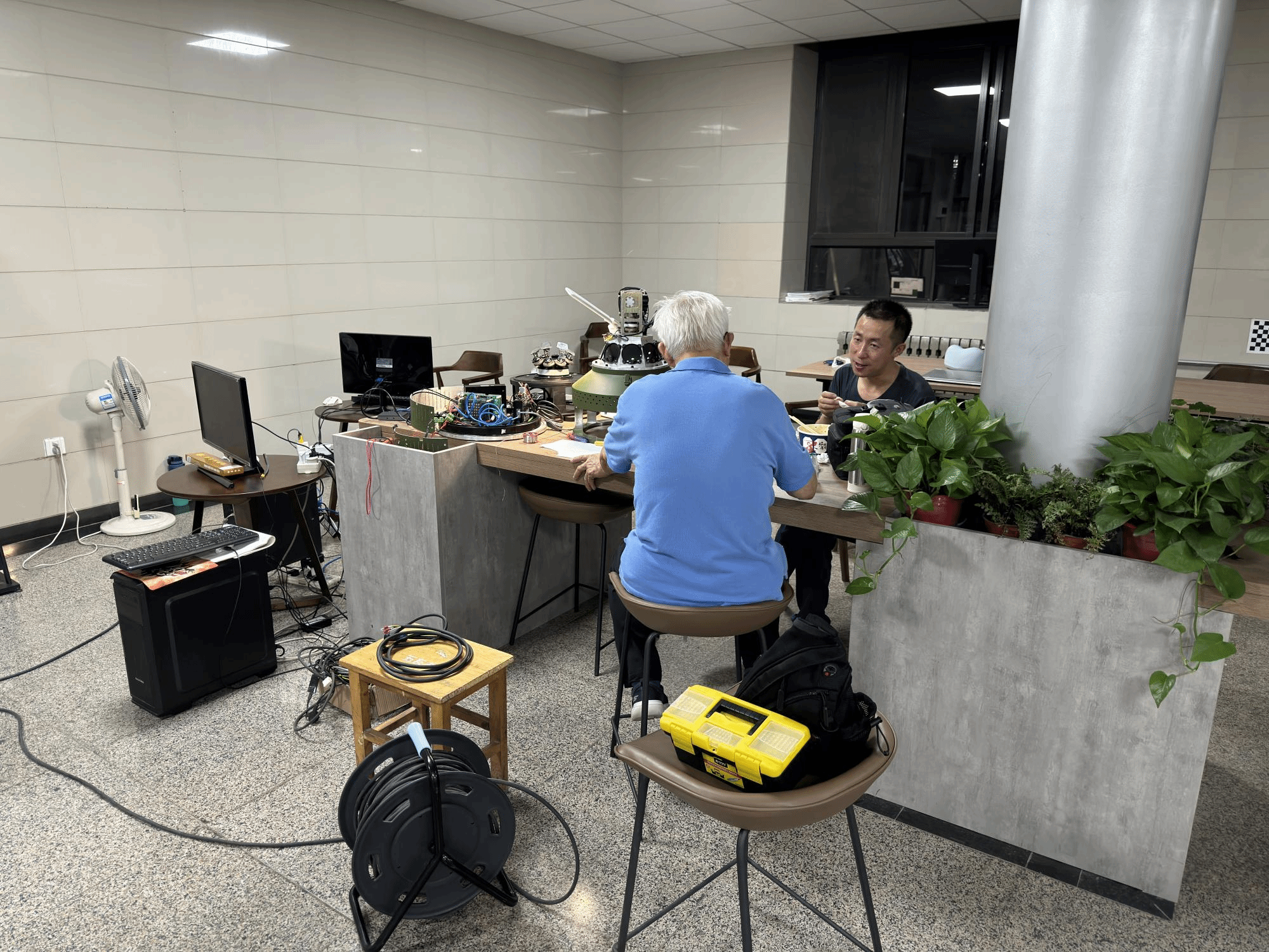 看着依依不舍的师弟师妹们,毕业的师兄师姐也纷纷把没来得及传授的经验一股脑掏了出来。写标书的注意事项、专利申请的规范要求、哪些软件看文献好用、论文怎么配图显得有高级感、项目日志怎么做……落其实者思其树,饮其流者怀其源。遵循着老师和前辈的足迹成长,也就能成为了更好的自己。团队低年级的同学与师兄师姐们结成了“科研对子”传帮带,在项目实践与论文打磨中迅速成长。转眼间,刚入门的科研小白也成长为独当一面的中流砥柱。团队严谨扎实的科研作风也代代相传。“就在前几天,项目验收结题的关键阶段,刘老师王老师还跟我们在二楼大厅一起干了二十多个小时呢,和老师一起弄,也就不觉得累、不觉得时间长了”,研一的王浦镇说道。