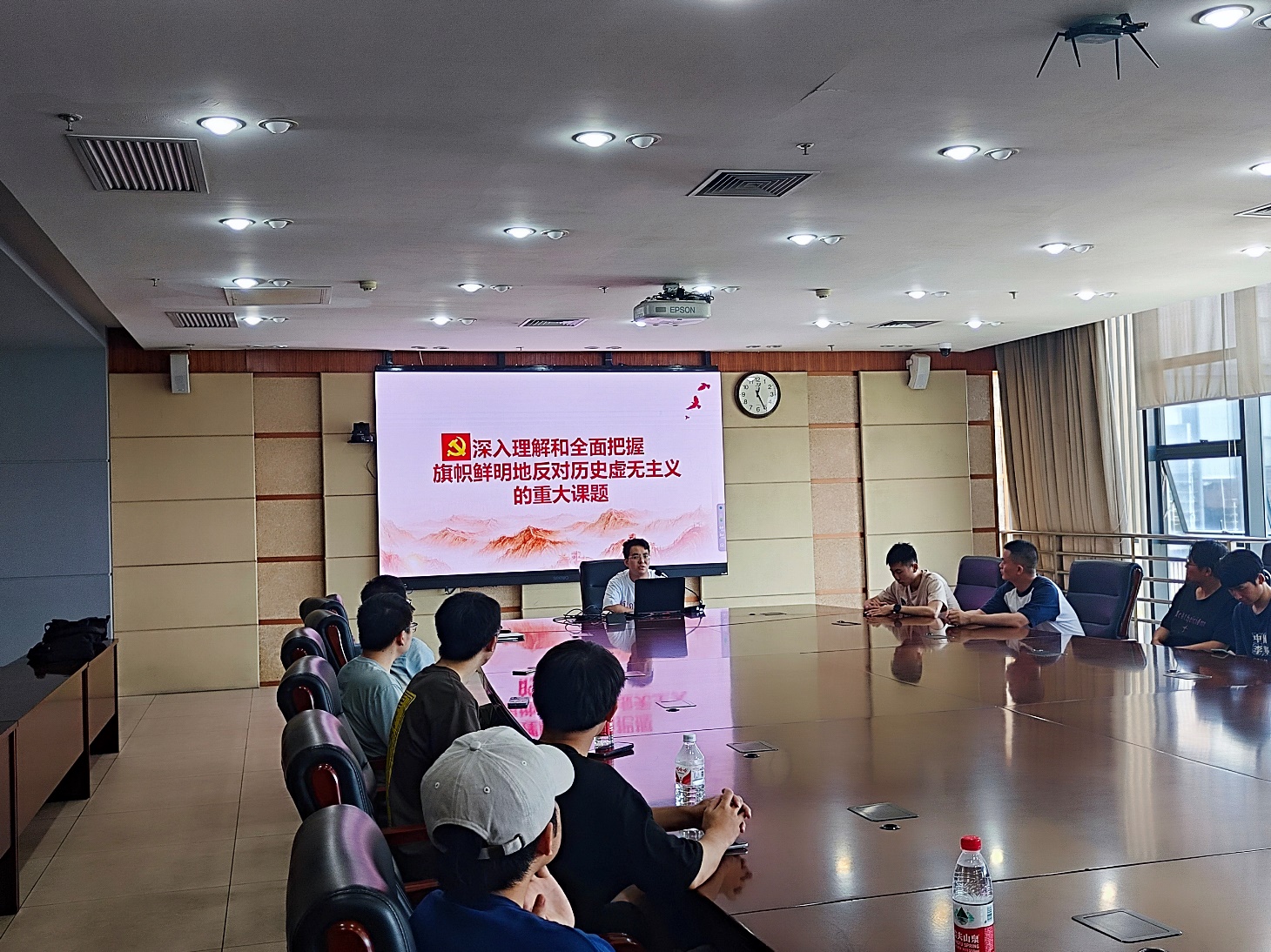 硕士2023级党支部书记高原进行了《深入理解和全面把握旗帜鲜明地反对历史虚无主义的重大课题》的专题党课。高原从历史虚无主义概念的提出、历任党和国家领导人对历史虚无主义的判断和指示精神讲起,详细介绍了反对历史虚无主义重大课题的提出,讲解了其概念与范围、科学界定标准,分析了历史虚无主义的性质和危害。高原结合最近火热的某手机游戏剧情和笑果文化脱口秀受到行政处罚的具体案例,深入剖析了历史虚无主义的现实表现和危害,并重温了学习《中国共产党党员网络行为规定》的有关内容,“党员应当敢于斗争、善于斗争,对网上各类错误思潮和错误观点敢于亮剑发声,旗帜鲜明批驳谬误。