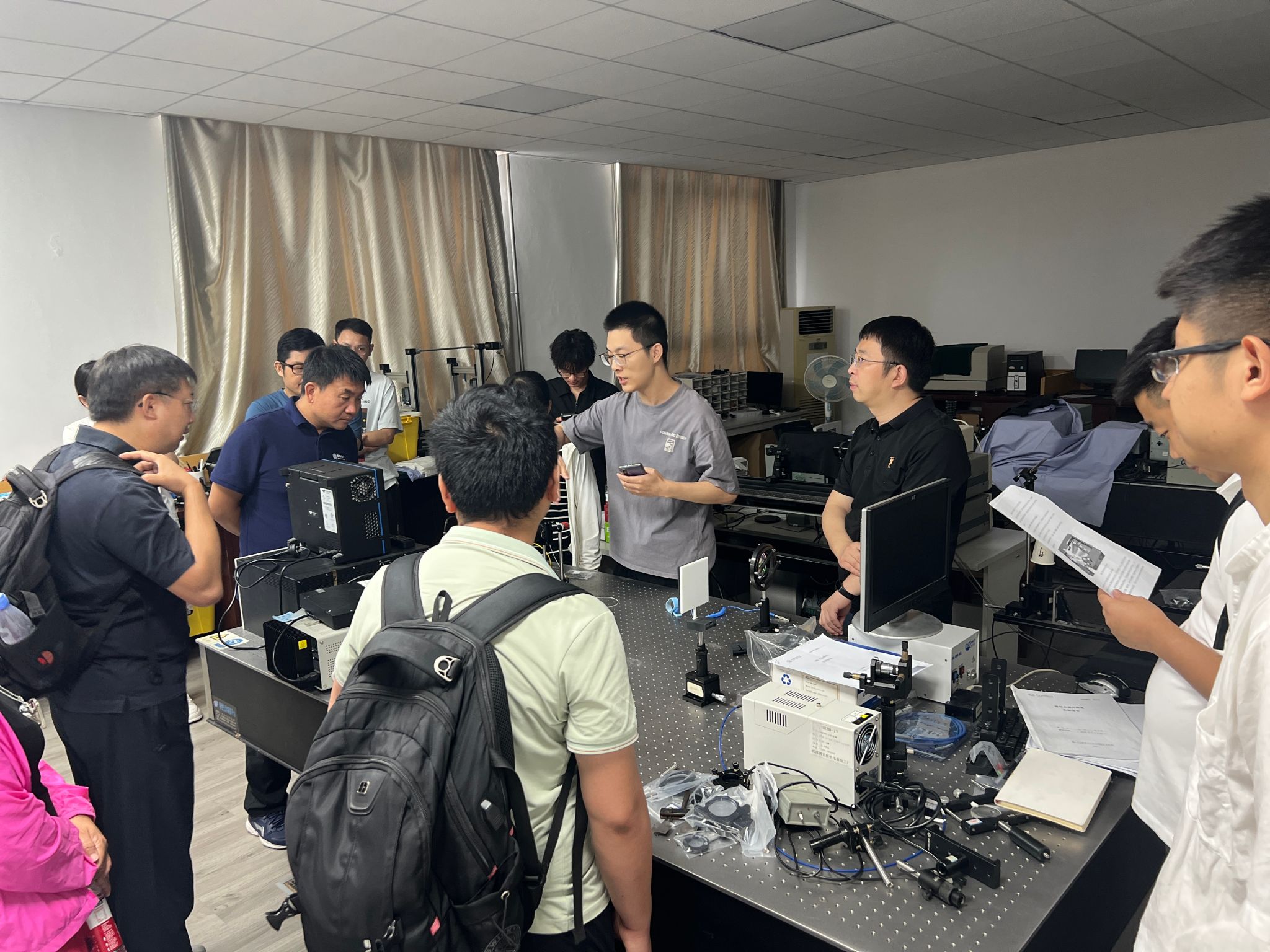随后,来访专家分组参观了yl23455永利集团超分辨光学显微技术、光电成像与图像处理、激光雷达与光电探测、分子光谱技术等六个实验室,相关教师为大家详细介绍了研究方向、仪器设备、研究成果等情况。在此过程中,来访人员与实验室相关教师展开了热烈的讨论,交流了学术思想并探讨了潜在的合作意向。