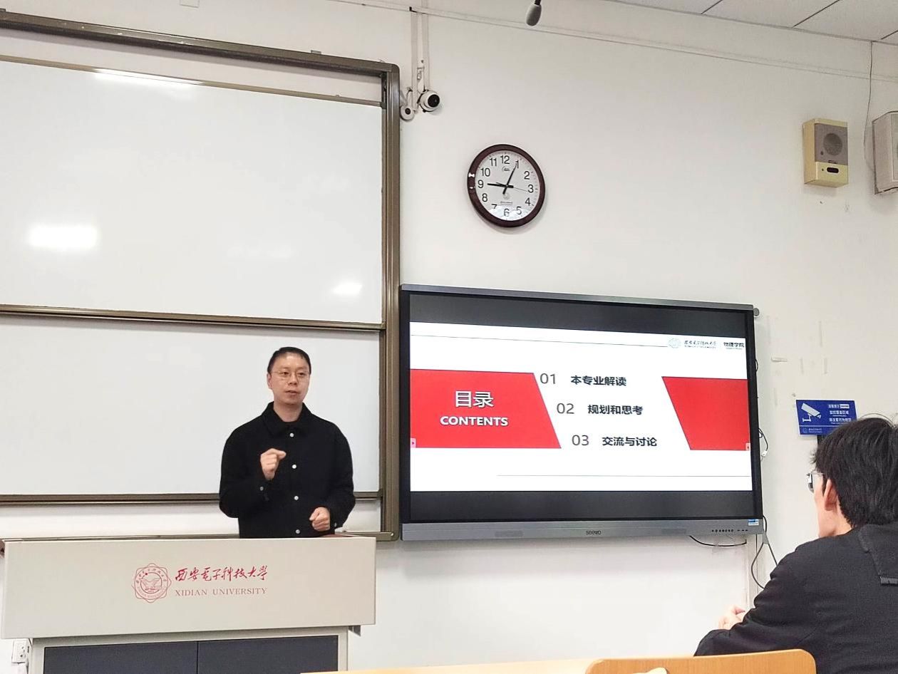 聂丁首先对电波传播与天线专业和对应行业发展进行了整体性的解读,强调电波传播与天线专业是国家国防紧缺专业,与航空航天、卫星探测等紧密联系,希望大家对所学专业保持信心。通过对电波行业环境和应用场景的纵横向分析举例,聂丁表示电波专业可适用的发展方向包括但不限于雷达、通信、遥感等等。同时,聂丁结合我院往届电波专业优秀毕业生的详细数据,鼓励同学们把握专业优势,勇敢追求更广阔的舞台。