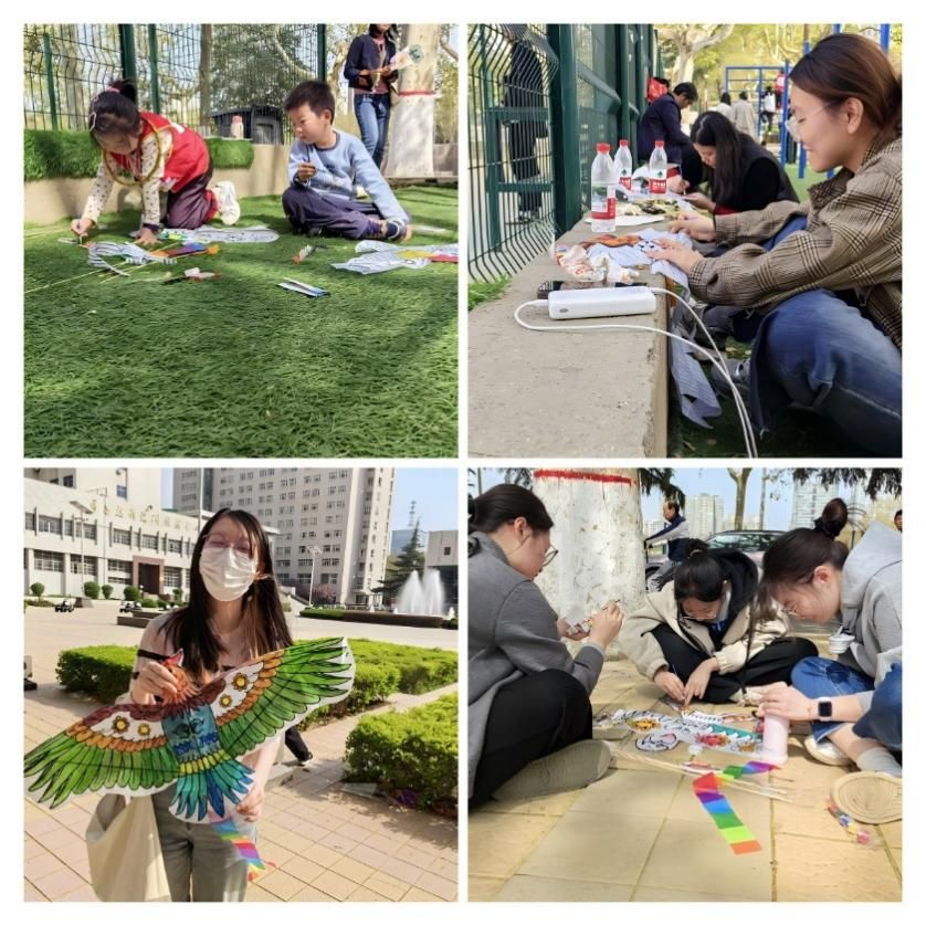 春日融融,纸鸢翩跹。师生们手持彩笔,在空白风筝上绘就创意图案。这些亲手绘制的风筝承载着对未来的期许,画出了春天的色彩。手牵细细一线,与天空拔河,拉着云彩尽情奔跑,形色各异的风筝装点了晴空,放飞了梦想。