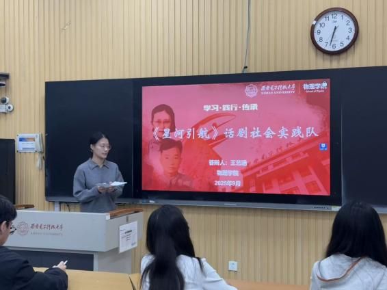 项目陈述环节,各团队代表以清晰的逻辑和生动的表达,全面呈现实践全貌。从项目背景的精准切入,到实施过程中“分工协作—问题研判—对策落地”的详细阐述,再到成果转化的具体案例与社会反馈的数据支撑,都展现出物理学子扎实严谨的实践作风。成果展示环节,各团队以图片展板、纪实短视频、数据对比图表等丰富多元的载体,生动还原线上教学的精彩瞬间、志愿服务的暖心场景与实地调研的真实见闻,让在场评委与观众直观感受到社会实践的丰富内涵与重要价值。提问环节,针对“如何深化实践成果辐射效应”“怎样构建长效化服务机制”等问题,团队代表从容应答、思路清晰,充分彰显出他们对实践项目的深度思考与系统规划。