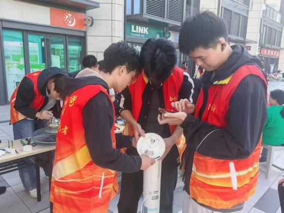 活动筹备阶段,在社区居委会领导及工作人员的协助下,志愿者们迅速进入状态,有条不紊地开展各项准备工作:他们默契配合,高效完成了桌椅摆放、电源连接、维修工具清点等任务,临时服务点很快便搭建完毕,以专业、整洁的面貌迎接每一位前来求助的居民。服务过程中,志愿者们充分发挥专业特长,构建起分工明确、协作高效的服务体系。擅长电路检测的同学化身“故障诊断师”,手持专业仪器对电水壶、电饭煲等小家电进行细致排查,精准定位每一处故障节点;动手能力突出的同学则担当“维修工程师”,娴熟地拆卸螺丝、更换损坏零件,让故障家电恢复“活力”;耐心细致的同学则承担起“知识传播者”的角色,一边记录维修进度,一边结合实际维修案例向居民普及家电保养知识。“热水壶水垢需每月用白醋清理,避免加热不均”“风扇不用时盖好防尘罩,定期给转轴加润滑油”,这些实用的保养技巧让居民们受益匪浅。遇到复杂故障时,志愿者还会围坐讨论,查阅专业资料确认解决方案,在集思广益中攻克维修难题,最终让30余件“罢工”的小家电重新恢复运转。