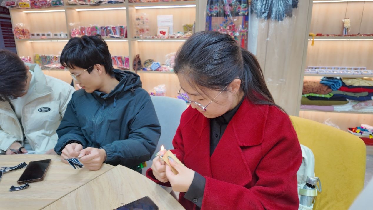 活动在社区党群服务中心温馨启幕。冬日的暖阳透过窗棂,在桌案上投下斑驳光影,也点亮了志愿者们眼中的期待。在社区老师的悉心指导下,一场关于“美”的创造开始了。丝带在指尖翻飞,卷、折、粘、合,每一个步骤都考验着专注与细致。初时的笨拙与胶水的“调皮”,并未消磨大家的热情,反而激发了愈挫愈勇的韧性。制作过程中宁静而执着的力量,正是“点亮青春”最生动的注脚。