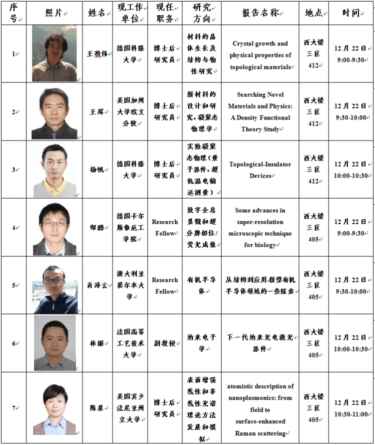 集团首届“华山青年学者国际论坛”物光院分论坛学术报告安排