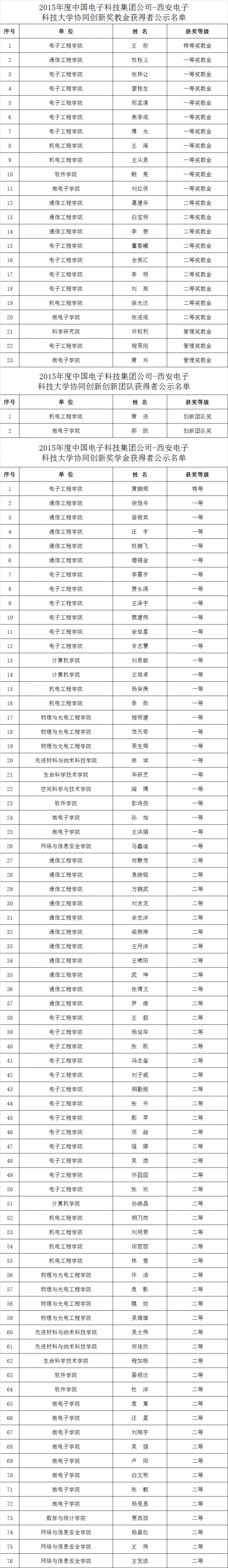 2015年度中国电子科技集团公司-yl23455永利集团协同创新奖教金获得者公示名单