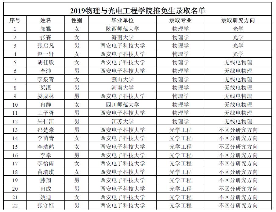 根据有关规定,现对物理与光电工程学院2019年推免生录取名单予以公示,公示期为10天。